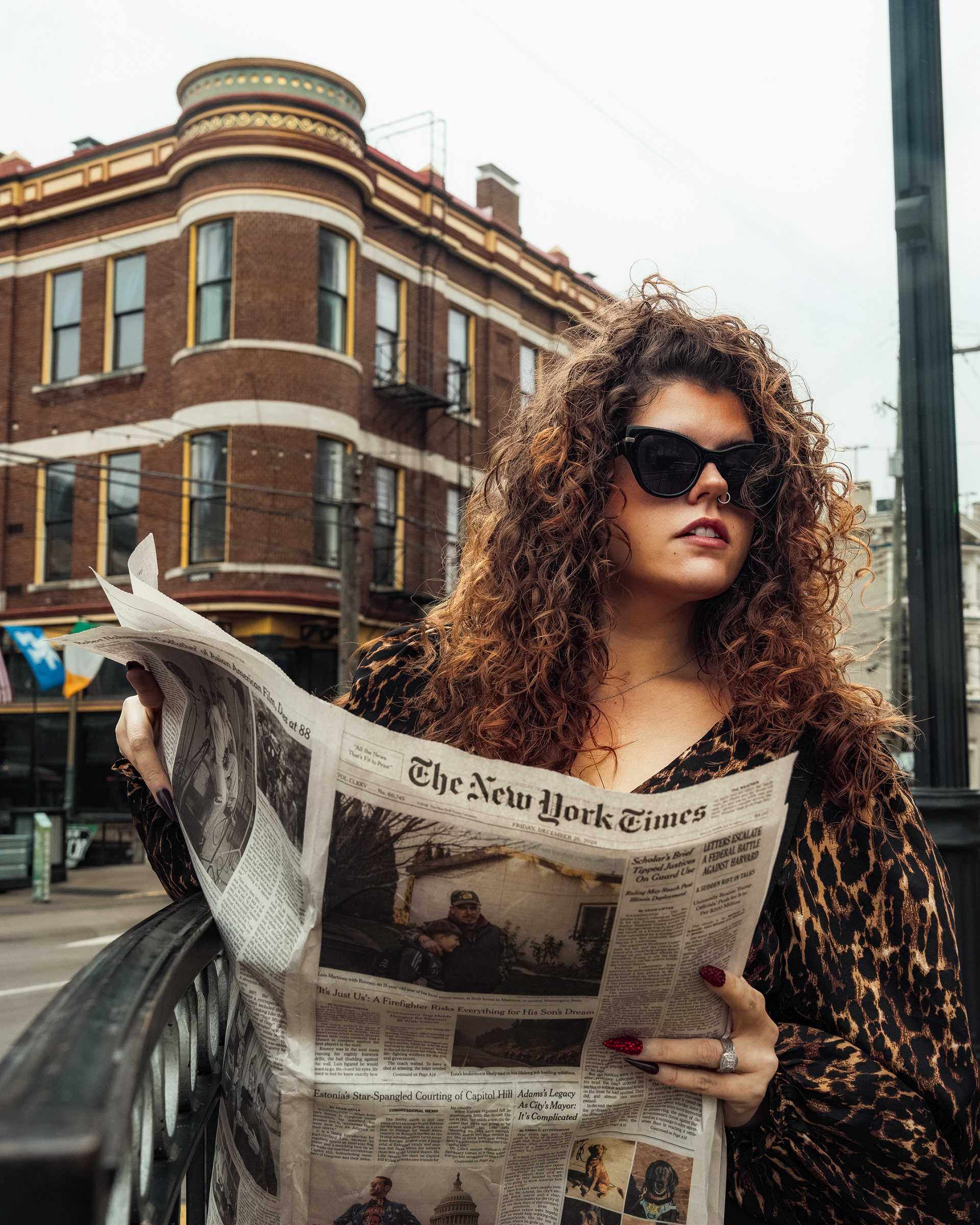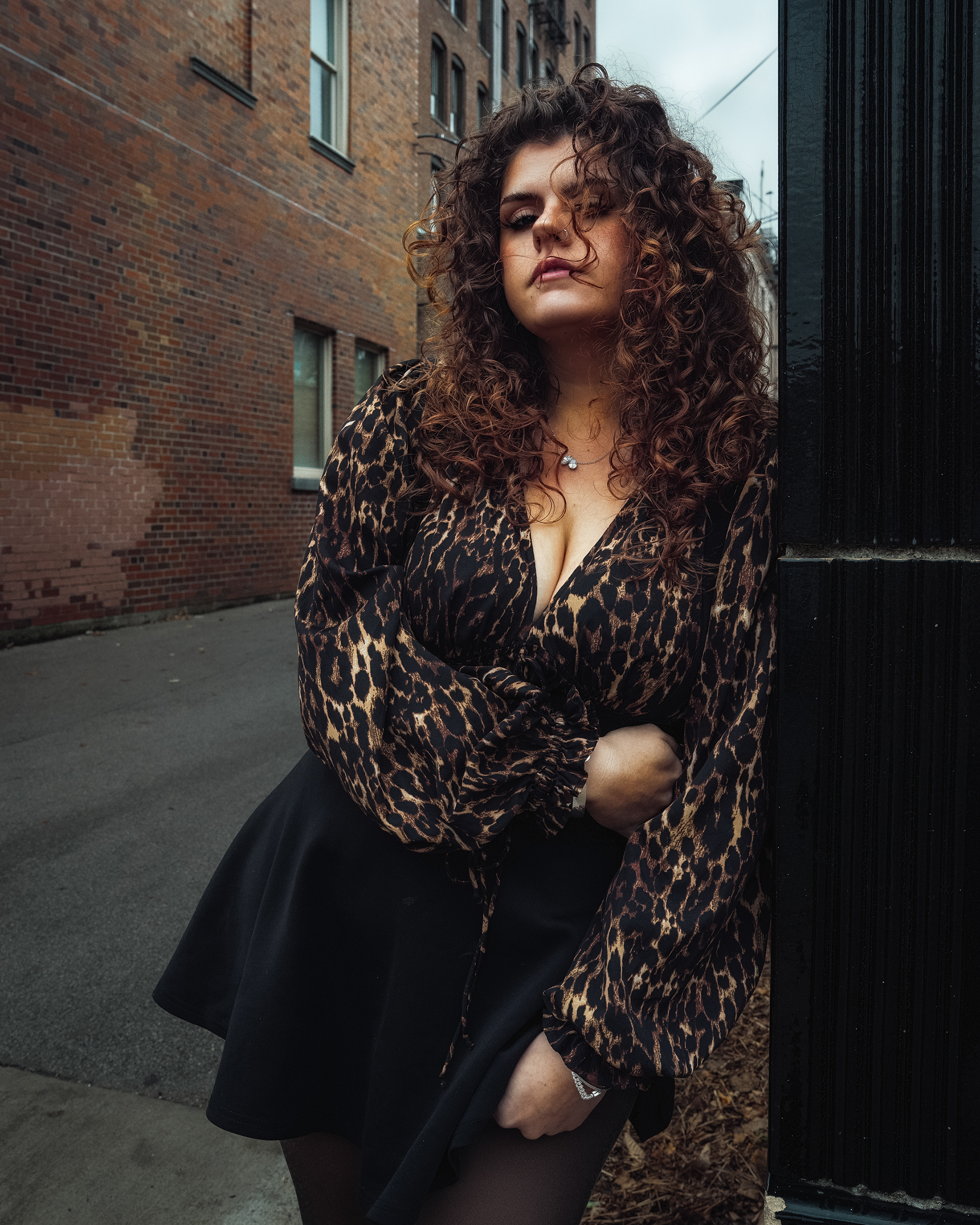 Rather than isolating the subject, this shoot used the city as a collaborator, storefronts, alleys, textures, and light all working together to frame Brittany as adaptable, confident, and commercially viable.